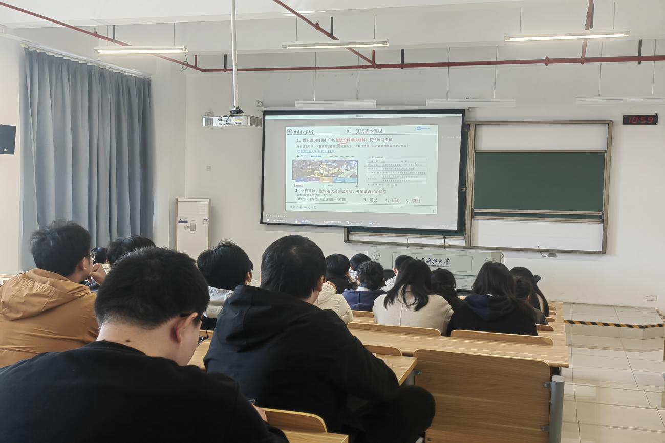 3月19日,公司邀请招生办公室陈部湘老师为考研学子们带来了一场深入浅出、详尽全面的考研政策讲解。陈老师凭借丰富的研究生招生经验,从公司招生、复试细则、调剂政策、系统操作等角度进行了全面细致的解读,确保每位考生都能准确把握复试的脉搏。她特别提醒同学们要谨慎对待考研复试,密切关注目标院校的复试通知,提前准备好相关材料,并保持良好的心态。