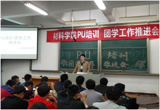 2017年10月19日下午4点,太阳成集团tyc太阳成集团tyc团委联合院宣传中心于西区综合楼117召开了PU培训以及团学工作推进会议。此次会议面向16、17级各班团支书、宣传委员、组织委员和员工组织部分同学,在培训“PU”使用方法的同时进行团学推进工作。材料院团委书记葛慧林、团委副书记张皓、校团委新媒体负责人范圣迪、院宣传中心主任陈拓阳以及院团委、宣传中心各部长出席了本次会议。团委实践部负责人季童童主持会议。