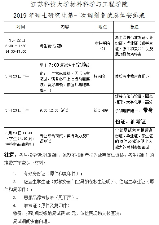 2019年硕士研究生第一次调剂复试总体安排