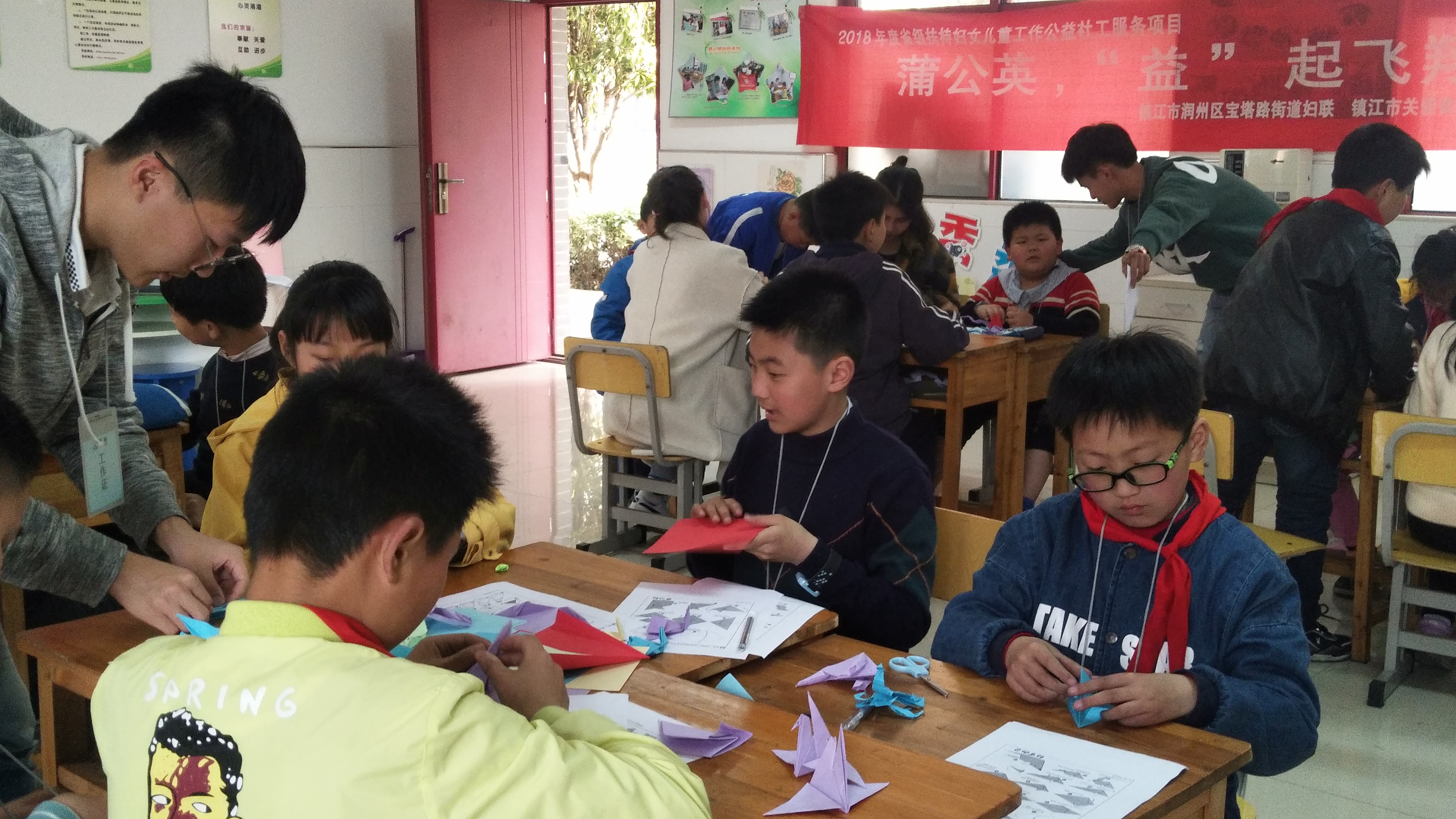 4月12日下午,太阳成集团tyc关爱中心项目组与1722106041团支部共20名志愿者前往润州区实验小学,开展了大手小手一起折“动物乐园最美折纸”志愿者活动。