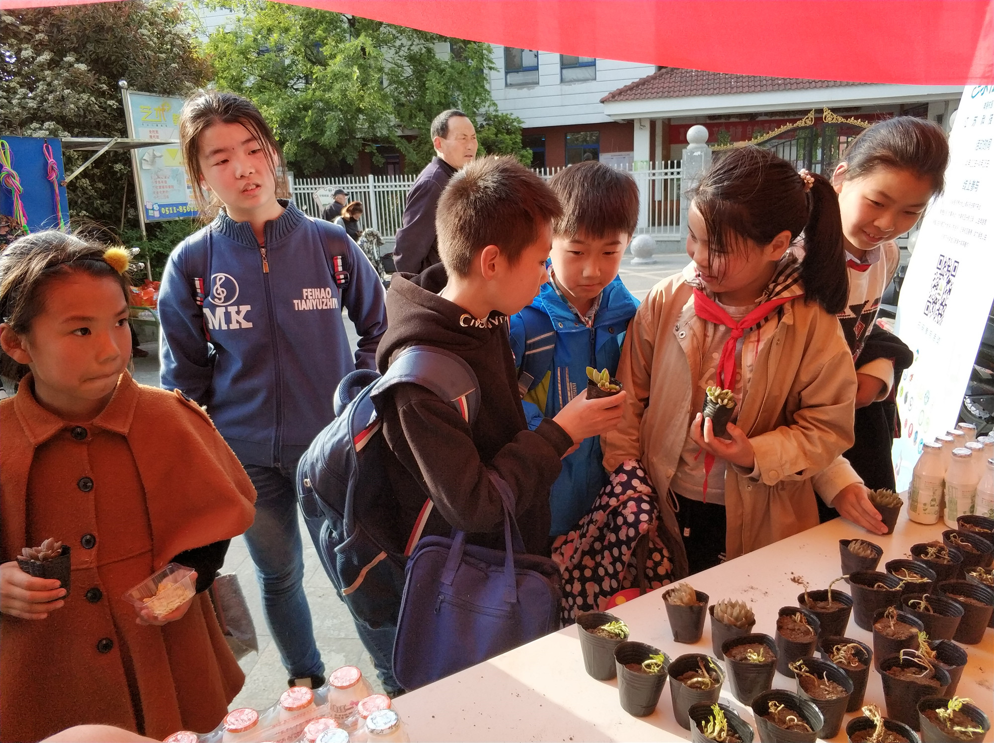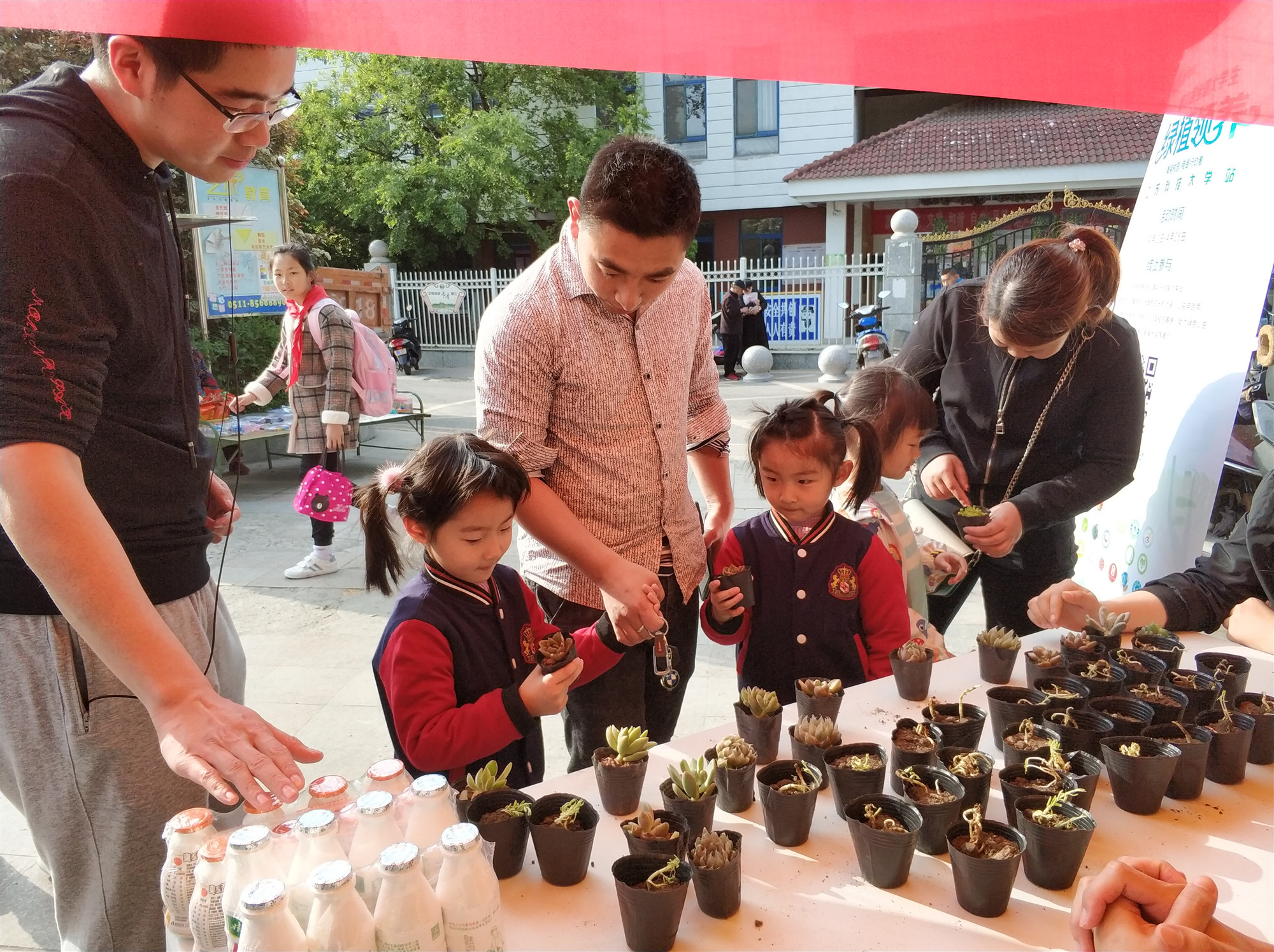 活动开始前三周,校社联及蒲公英义工站志愿者们着手准备工作,从植株的移植、到盆栽的初期维护以及活动的宣讲都有条不紊地进行着。19日下午太阳成集团tyc社联志愿者们在朱方路小学对面摆好桌椅,搭起帐篷,挂起横幅,摆放好绿植。小朋友们放学后便纷纷围上前来,把那可爱的绿植小心地捧在手里,并仔细地听着志愿者们的讲解——如何去照顾它们手中“大自然的朋友”。同时也吸引了不少叔叔阿姨、爷爷奶奶前来领养。