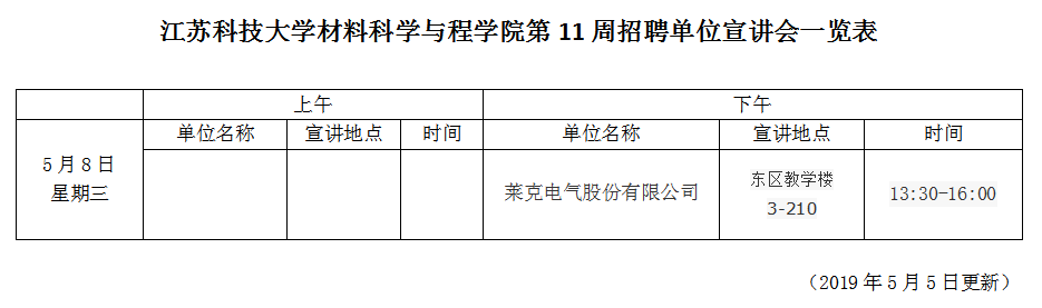 招聘会|太阳成集团tyc第11周招聘单位宣讲会一览表(2019年5月5日)