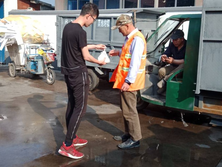 夜色还未褪去,志愿者们早早地集合进行早餐的准备以及分配工作,每份早餐袋上都贴有感恩的话语。在活动现场,志愿者们为30余名环卫工人送上爱心早餐及康乃馨,给这些辛勤工作的城市美容师送上暖暖的问候和关怀。志愿者们还为在场的母亲送上提前准备好的母亲节礼物康乃馨,并表达了对母亲们的祝福。志愿者们还体验了环卫工作,整理了共享单车,创文明城市,塑造城市美好形象。参与活动的志愿者张孝杰说:“刚刚跟一个师傅聊天,才知道他们凌晨4点就出来工作了,真的很辛苦,希望我们今天的活动能给他们带来一些温暖,也同时希望大家可以共同爱护我们的环境卫生,珍惜他们的劳动成果。”
