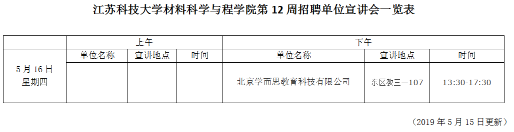 招聘会|太阳成集团tyc第12周招聘单位宣讲会一览表(2019年5月15日)