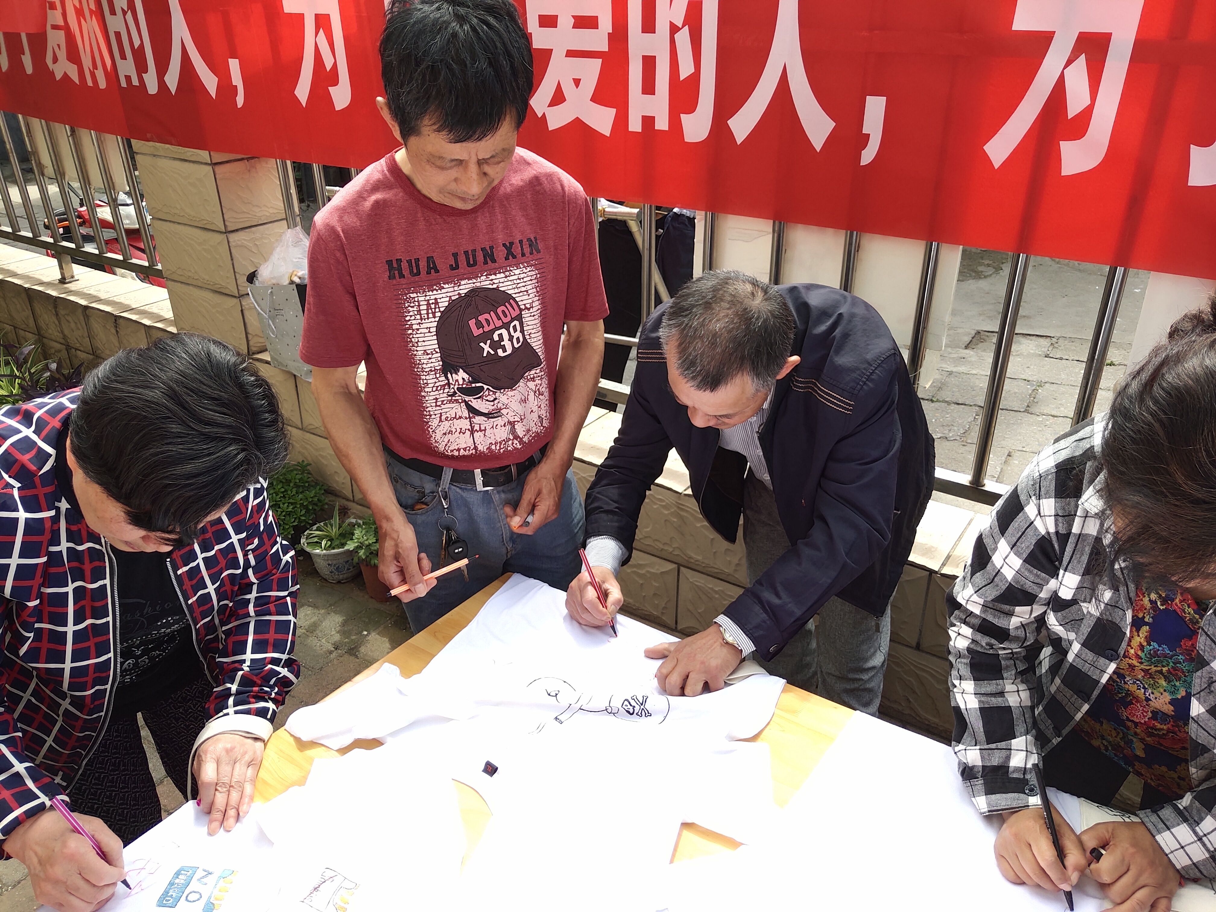志愿者们早上9点来到风车山社区,以社区成员为对象进行问卷调查,以此了解社区成员对吸烟的态度。通过调查结果志愿者了解到居民基本上都希望世界无烟,并表示会珍爱健康。随后志愿者们以小讲座的方式通过实例讲解为社区群众讲述了吸烟的危害、戒烟的方法和“世界无烟日”的内涵。志愿者们与社区成员在街道空地共同绘画世界无烟日宣传图案,路过行人中的吸烟者都自觉地熄灭嘴里的烟,不少人投来赞赏的目光。