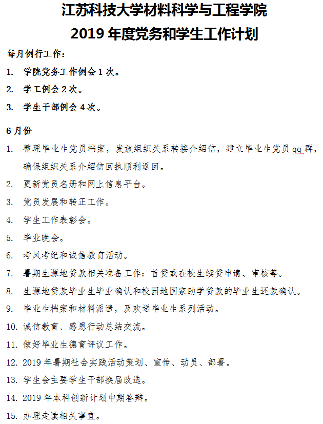 工作计划|2019年6月 党建、员工工作计划