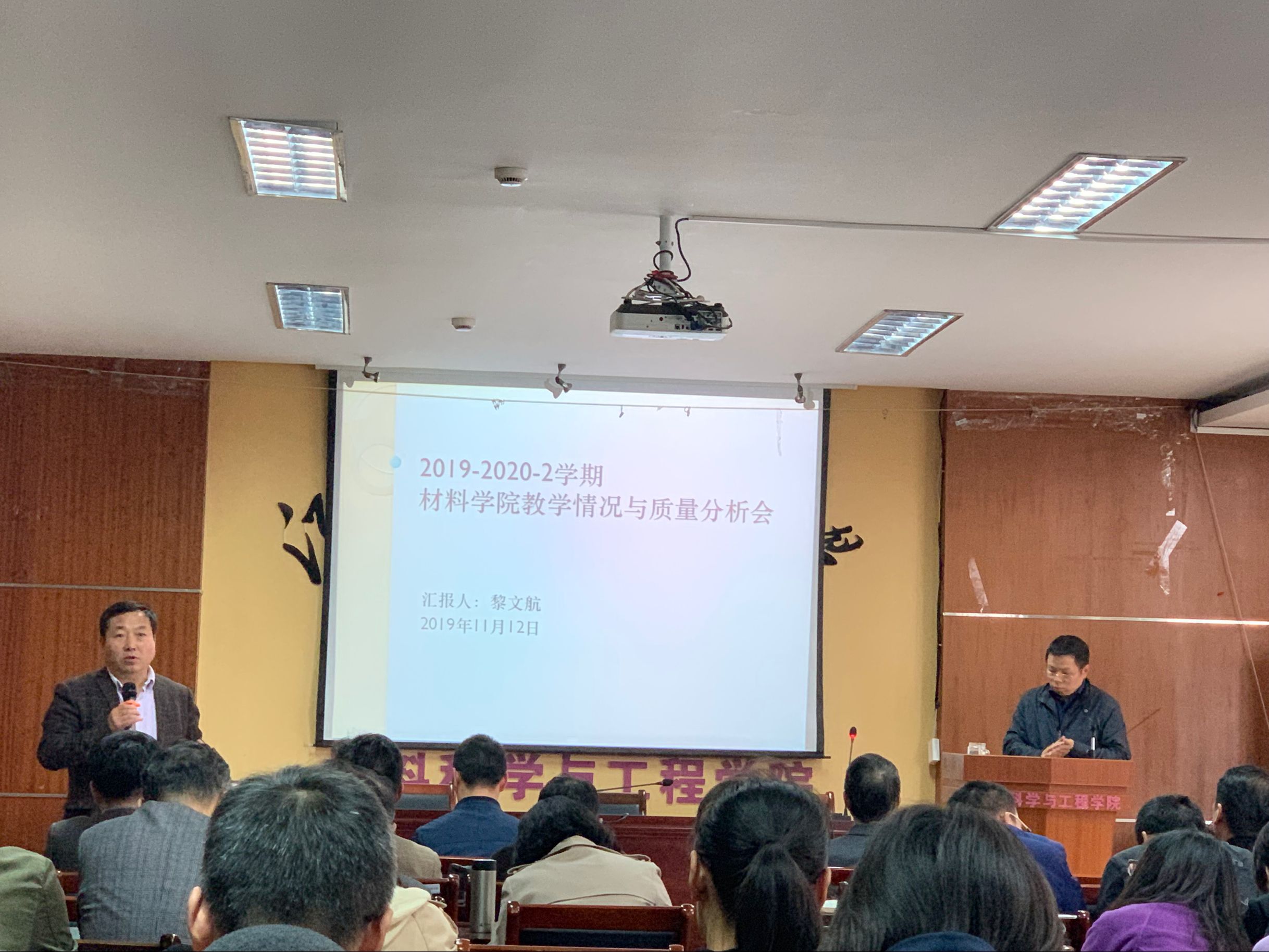 2019年11月12日下午,太阳成集团tyc在院报告厅召开2019-2020学年第1学期教学情况与质量分析会,全体院领导及全体教师参加。会议由公司党委书记祁凯主持,祁书记首先简要总结了今年公司在教学工作上取得的成果,对全体教师的努力表示感谢。副经理黎文航做了关于公司教学情况与质量分析会的报告。