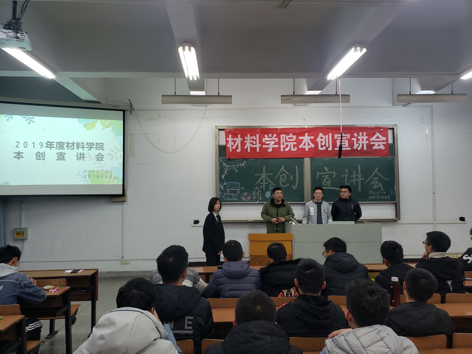 本次宣讲会还请到了四位学长学姐交流自己在本创中的收获。17级金属专业的刘林锡学长介绍了自己参加本创项目的心得体会,并分享了自己的研究经验。焊接专业研究生学姐于瑞,向大家介绍了关于研究选题的方向确定问题、研究过程中论文格式问题,以及实验操作中所需要注意的问题和办公技能、交流技能在研究中的重要性。17级高分子专业研究生学姐骆芳介绍了自己关于碳纳米纤维在超电容器上的应用研究,包括背景介绍、研究现状、实验方法以及研究计划。19级防腐专业研究生叶飞学长通过自己的本创经验,为活动作出总结,鼓励同学们了解本创,积极参与本创。