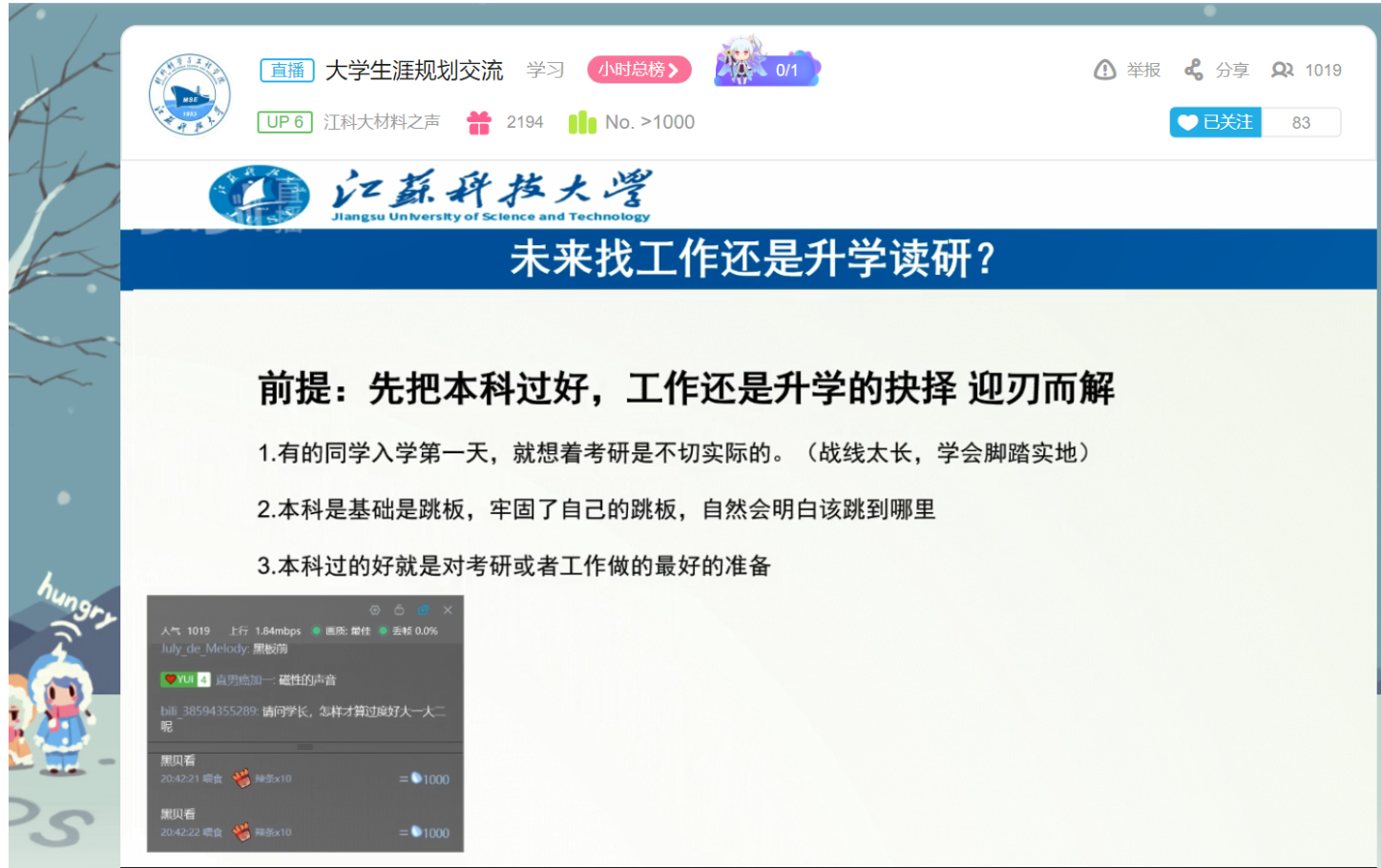 这些问题是4月5日太阳成集团tyc通过线上直播方式开展老员工学业和职业生涯规划交流会中,2015级金属材料专业毕业生魏天谣同学和2016级金属材料工程邢珊珊同学与学弟学妹们分享的问题。此次线上交流用时近3小时,最高在线人数达到1027人。