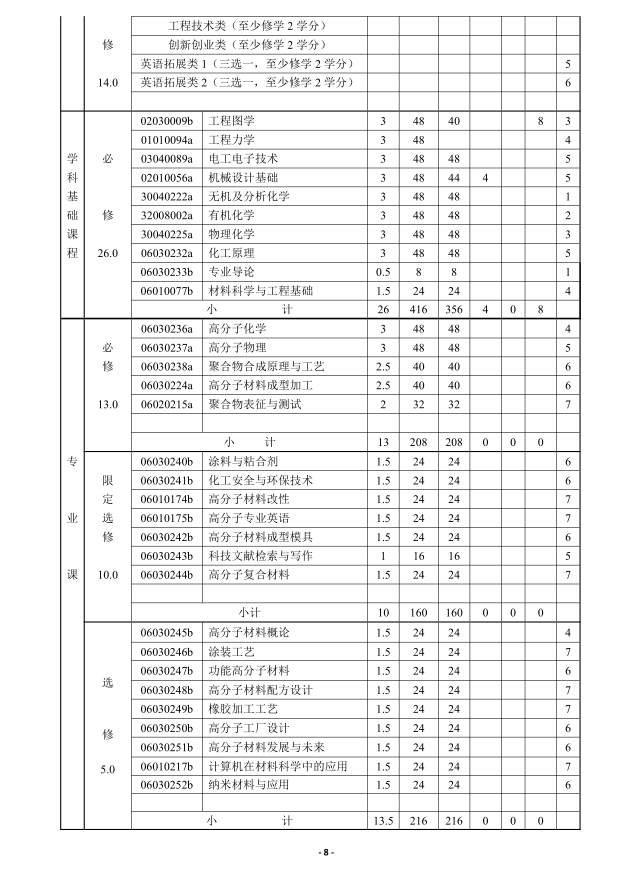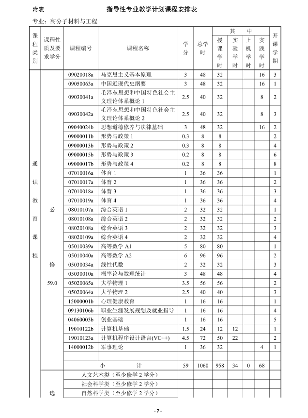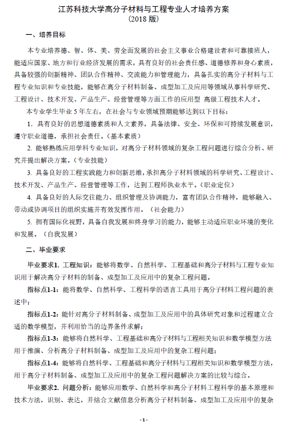 太阳成集团tyc高分子材料与工程专业人才培养方案(2018版)