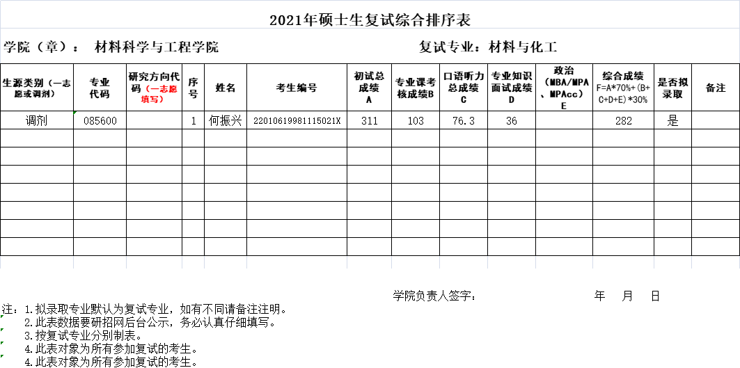 考研公示|2021年硕士生(第八批)调剂复试成绩排序表