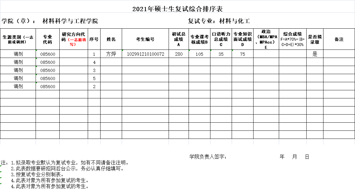 考研公示|2021年硕士生(第六批)调剂复试成绩排序表