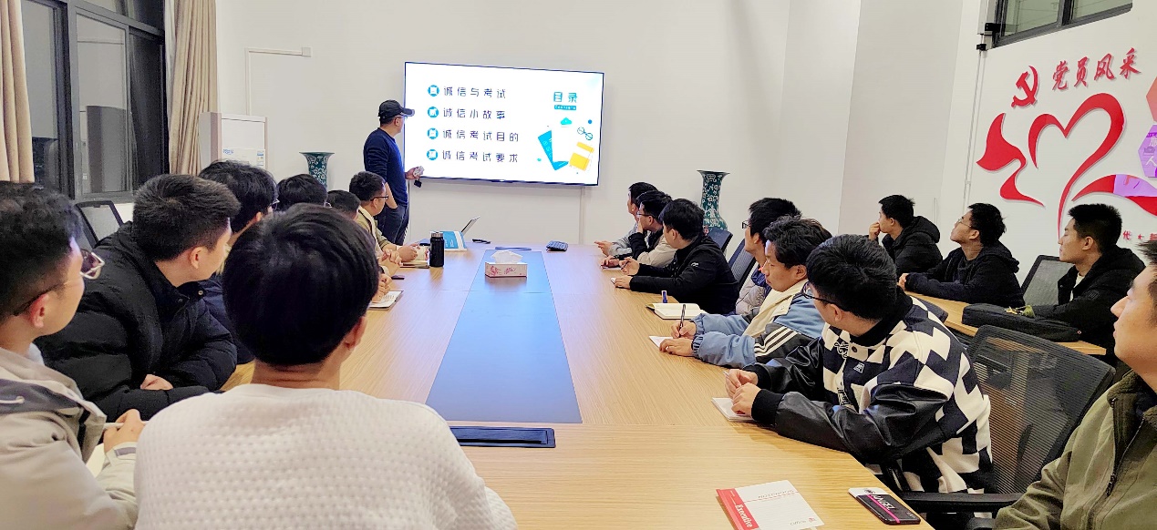 12月7日,太阳成集团tyc研工办于材料楼518会议室组织开展四、六级考试诚信教育活动,2021级研究生班长团支书参加会议,会议由研究生辅导员张世文主持。