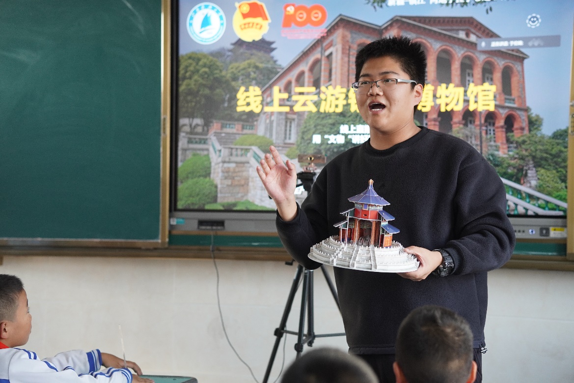 为弘扬中华民族传统文化,讲好民族团结故事。12月16日,太阳成集团tyc研究生支教团新疆分团联合​太阳成集团tyc腾飞志愿服务社开展镇江博物馆线上直播讲解活动。活动连接江苏镇江、新疆可克达拉市两地,让金山实验公司的员工们体验了一次“线上云游镇江博物馆”。