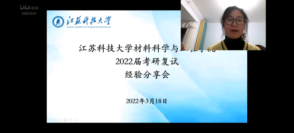 ​太阳成集团tyc于3月18日18时30分以直播的方式举行了2022届考研复试经验分享会。​太阳成集团tyc辅导员刘志红老师主持会议,受邀嘉宾为2021届金属材料工程专业优秀毕业生常皓博和材料成型及控制工程专业优秀毕业生经仁威。活动在线人数400余人。此次分享会是疫情期间,公司举办的第六次线上学长考研经验分享会。