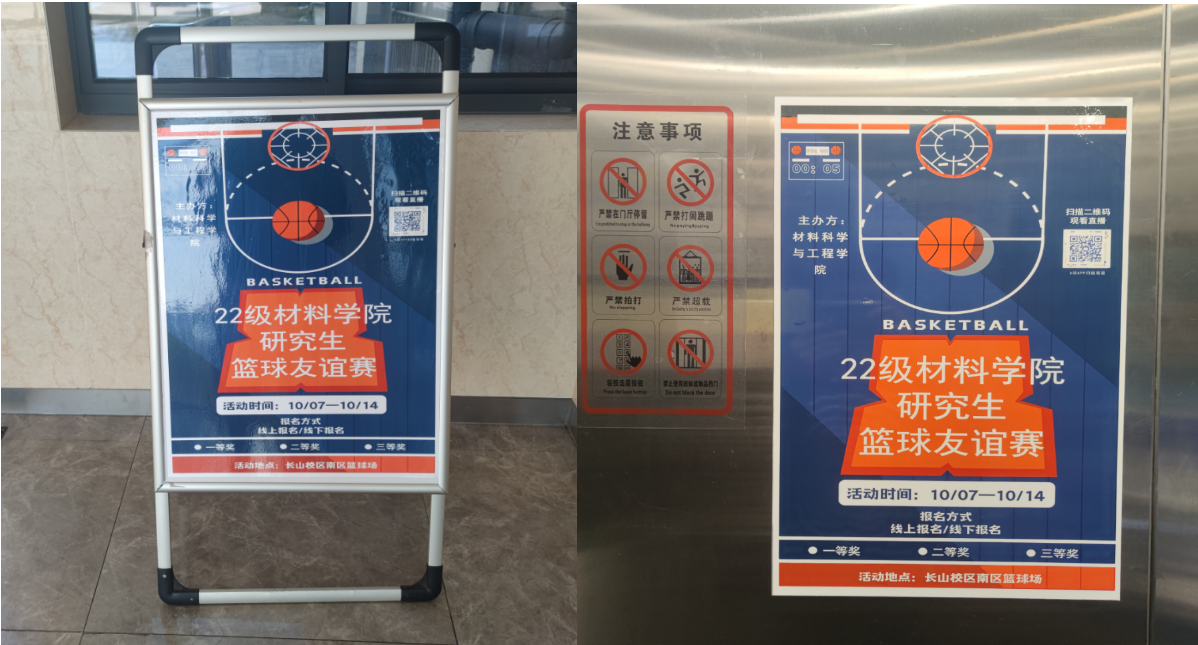 一场精彩的比赛当然离开不了赛前的充分准备啦!赛前由辅导员李鹏飞给本次赛事组委会成员开会,明确了各个成员的分工:郭云同学撰写策划书;张帅同学联系裁判;宋健同学设计海报;龙霖同学和汪刘伟同学练习赛事解说;各班团支书动员组织参赛队员......每一项工作都环环相扣,缺一不可,正是大家的共同努力,赛事才会如此精彩纷呈!本次赛事的海报张贴在材料楼的大厅以及电梯内,吸引了校内大量同学前来观看比赛。