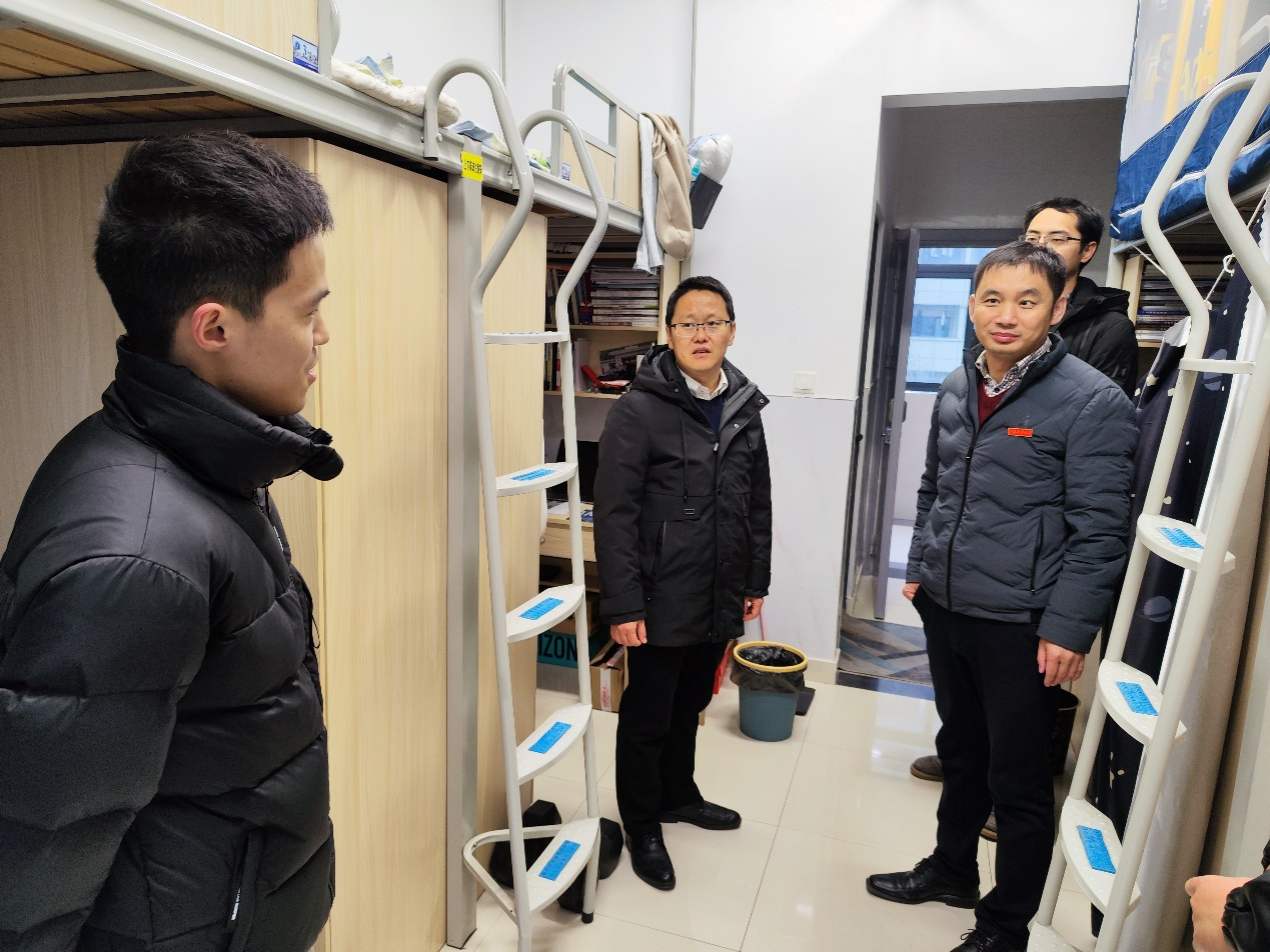 来到207宿舍,李瑞峰书记察看了员工的床被和生活环境,叮嘱同学们要注意安全用电,宿舍定期通风,做好个人防护,要理解和相信公司关于疫情防控的各项审慎决定,听从公司各项安排部署,以积极的态度更好地应对学习生活的变化,公司将努力保障和促进同学们身体健康、心理健康、心灵健康,让大家体会到公司的温暖,公司始终守护在同学们身边。