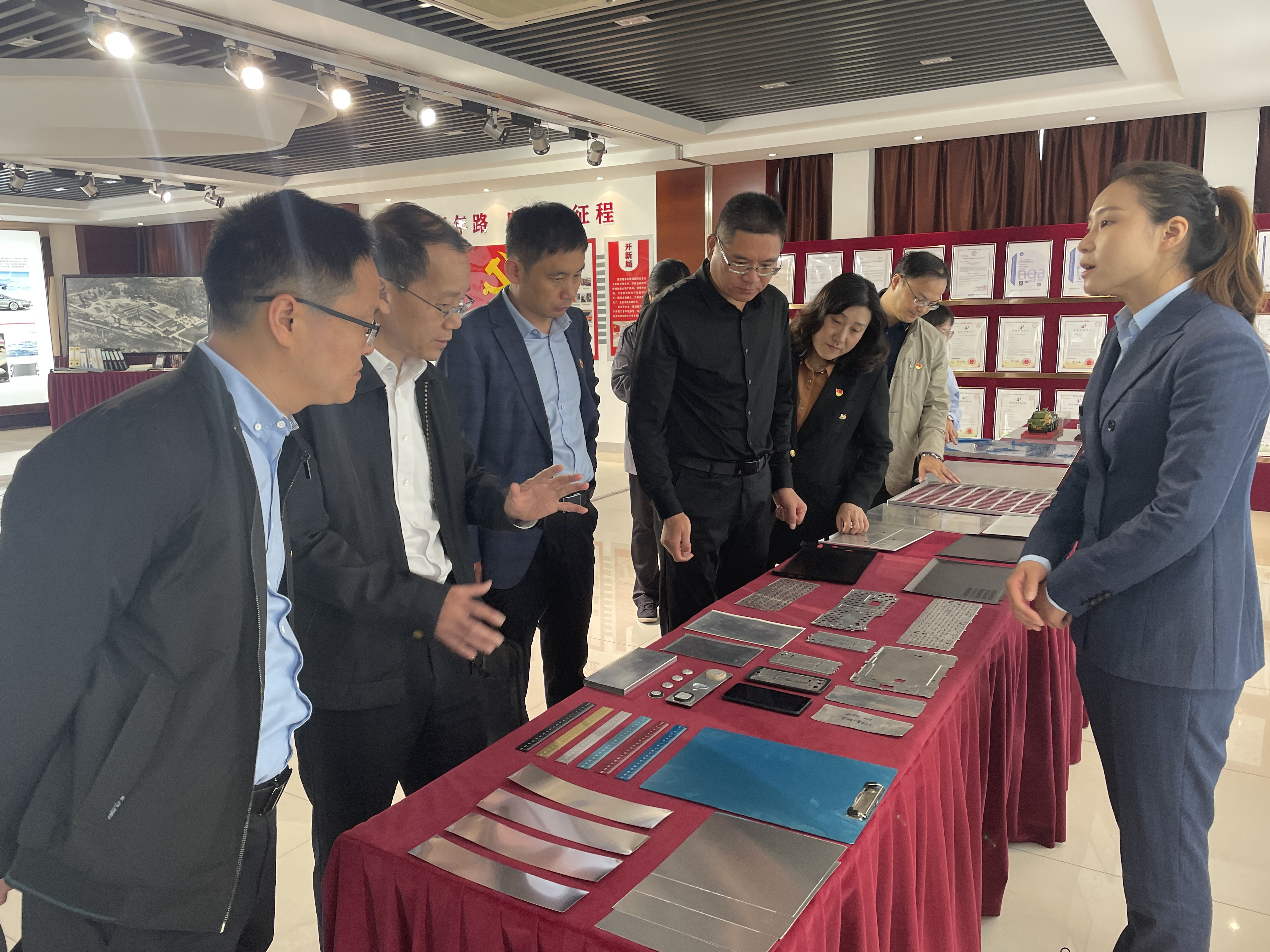 大力神科技集团党委书记、大力神铝业股份有限公司董事长兼总经理曹旷,大力神科技集团党委副书记张兴鹏、大力神铝业股份有限公司常务副总经理郦锁华等对王加友董事长一行的到访表示热烈欢迎。首先,张兴鹏副书记带领参观了取向硅钢生产线、党群综合体,详细介绍了公司发展历史、产品特色、党群建设等相关情况,随后参观了铝业公司铝合金产品生产车间、研发实验室、资料室、产品展览室等,详细介绍了公司设备搭建、产品研发、后期应用等内容。