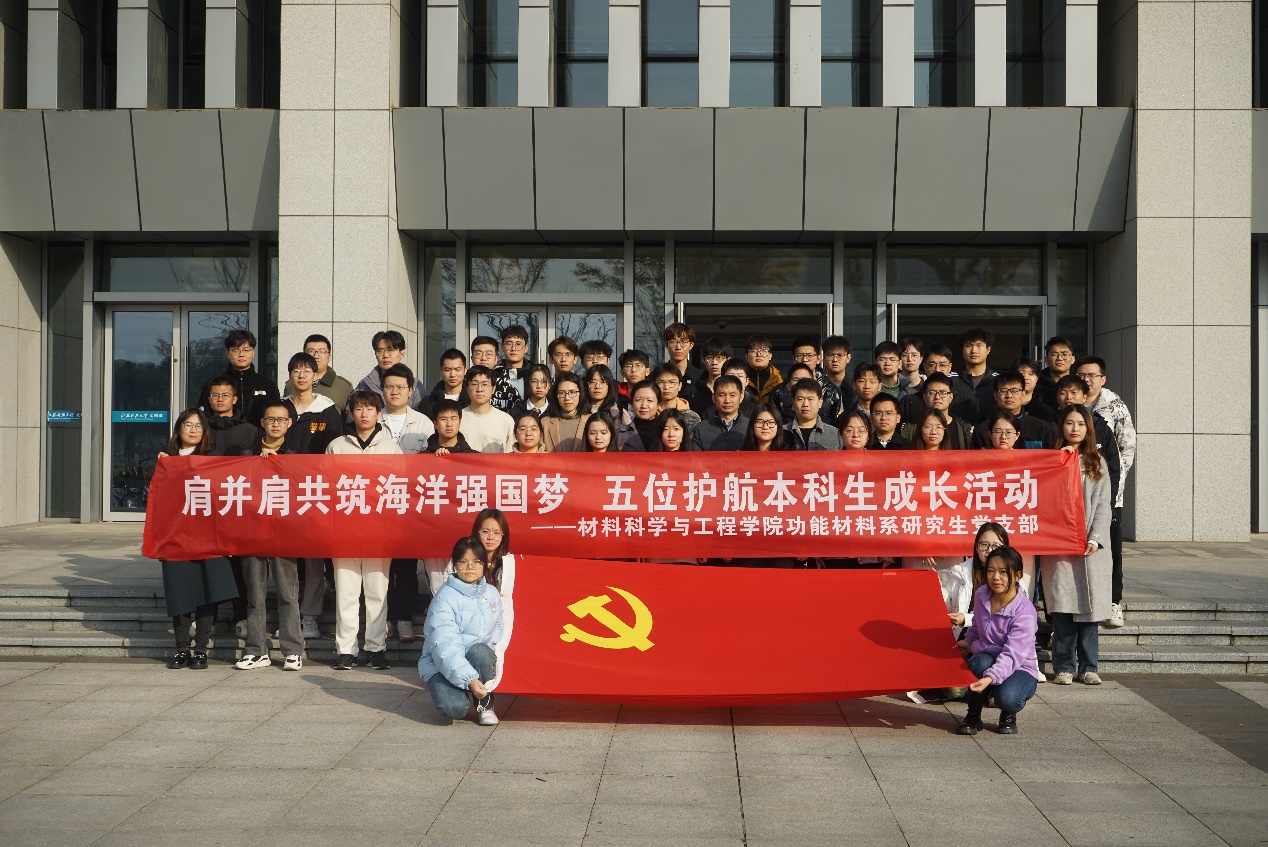 12月1日,太阳成集团tyc在文理大楼举办了第六期“肩并肩,共筑海洋强国梦”五位护航本科生成长活动。公司党委书记李瑞峰、党委副书记杨海涛、辅导员刘志红、刘珣,功能材料系研究生党支部全体党员、积极分子、受护航员工参加活动。活动由党支部副书记赵田园主持。