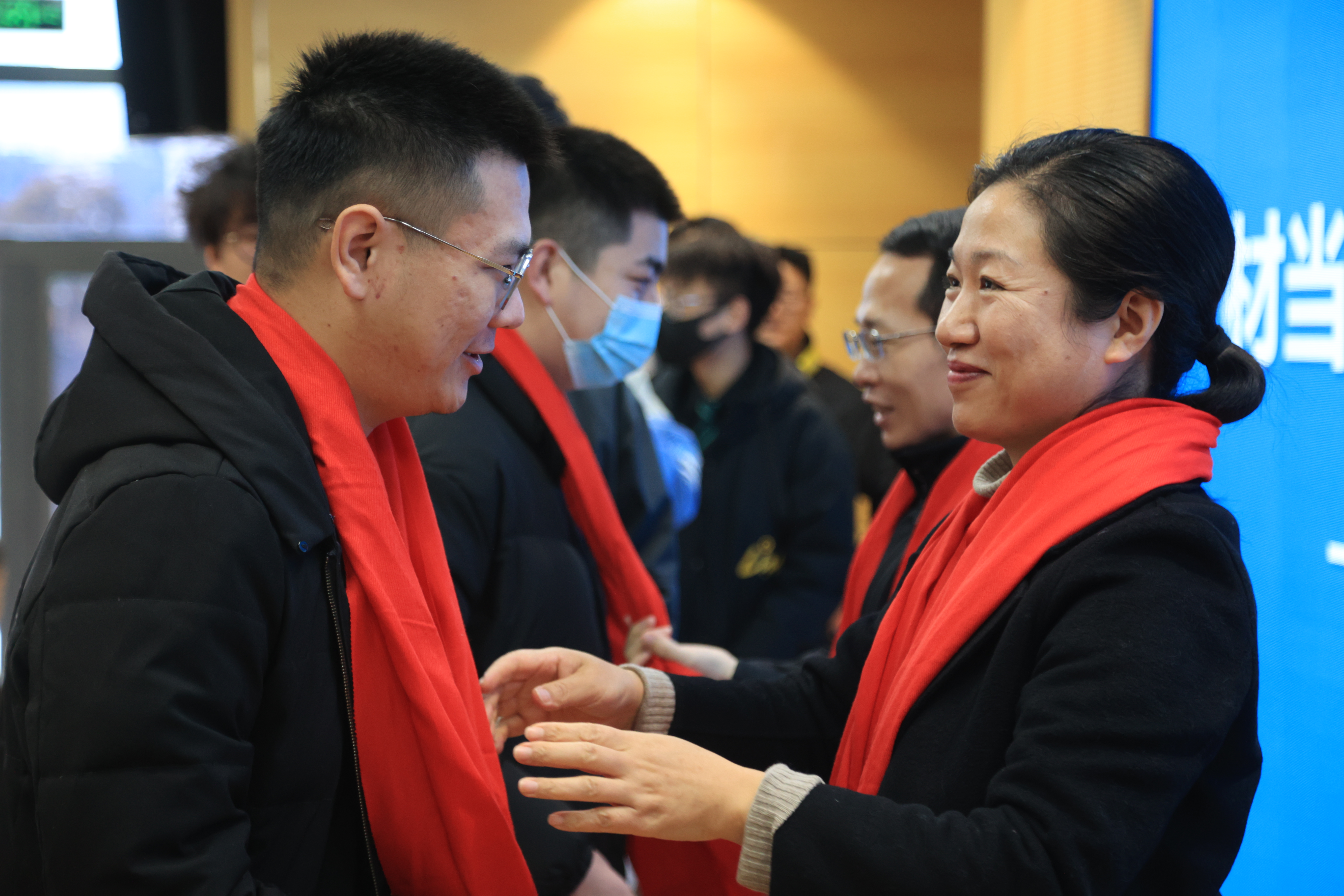 公司还为每位考研学子准备了暖心礼品,一条印有院徽的红色围巾,寓意备考“红围巾”,考点全打尽;一个小挂件,祝愿考生“一举夺魁”;一枚橙子,寓意“前程似锦”。