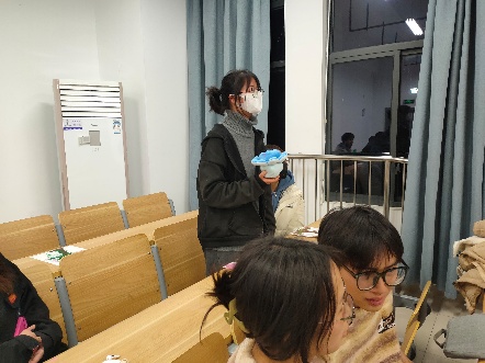 义工站同时组织了同学们进行击鼓传花,共同分享春天的诗句或习俗。在紧张的鼓声中,同学们前后传递着信物,时不时爆发出一阵阵笑声,好不热闹。随着鼓声的暂停,最后手持信物的幸运同学站起分享了关于春天的诗句,赢得了大家的一片掌声。在击鼓传花的紧张与欢乐之中,同学们更加深入地了解到了春天的文化内涵,增加了对自然生活的热爱以及对传统文化的理解与认同,增强了文化自信和归属感。