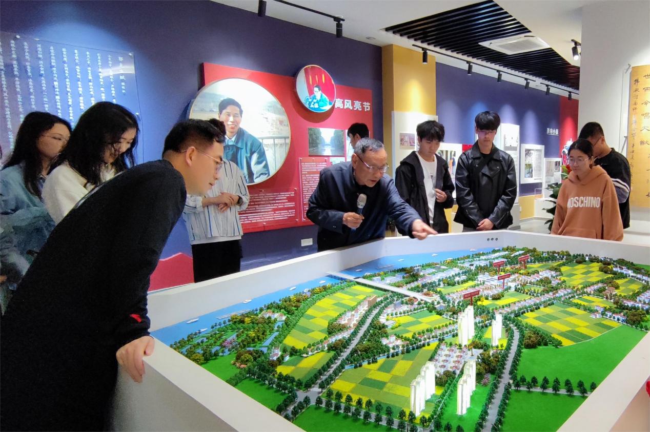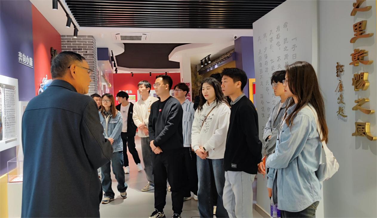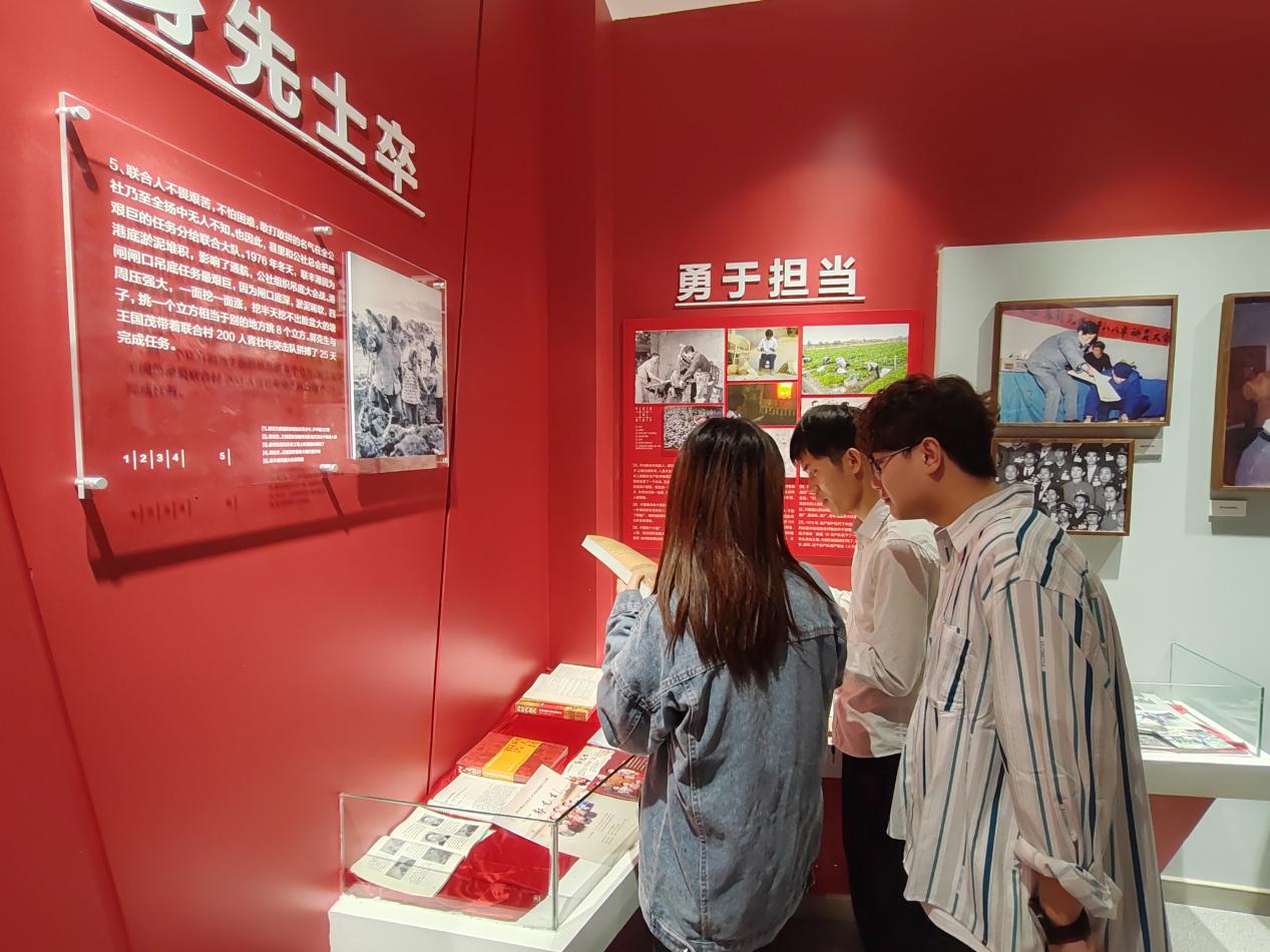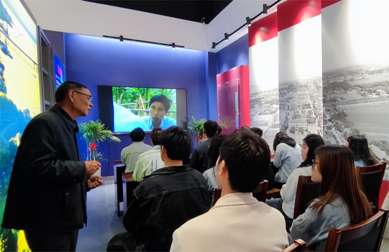 陈列馆分为“沧海桑田”和“郭克生先进事迹”两部分,“沧海桑田”部分介绍了联合村的历史和发展,“郭克生先进事迹”部分包含“艰苦岁月”“艰苦创业”“身先士卒”“勇于担当”“奔向小康”“一心为民”“高风亮节”七个模块,采用图片、文献、实物以及多媒体相结合的表现手法,真实生动地展现了郭克生老书记的奋斗一生。讲解员用详细解说带领全体同学深入了解郭克生同志身先士卒、艰苦创业的感人事迹,对老一辈共产党人如磐的初心、坚定的信仰、优良的作风有了更加深刻的认识。