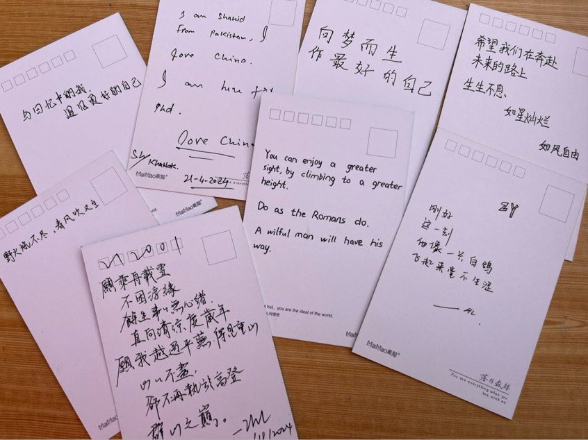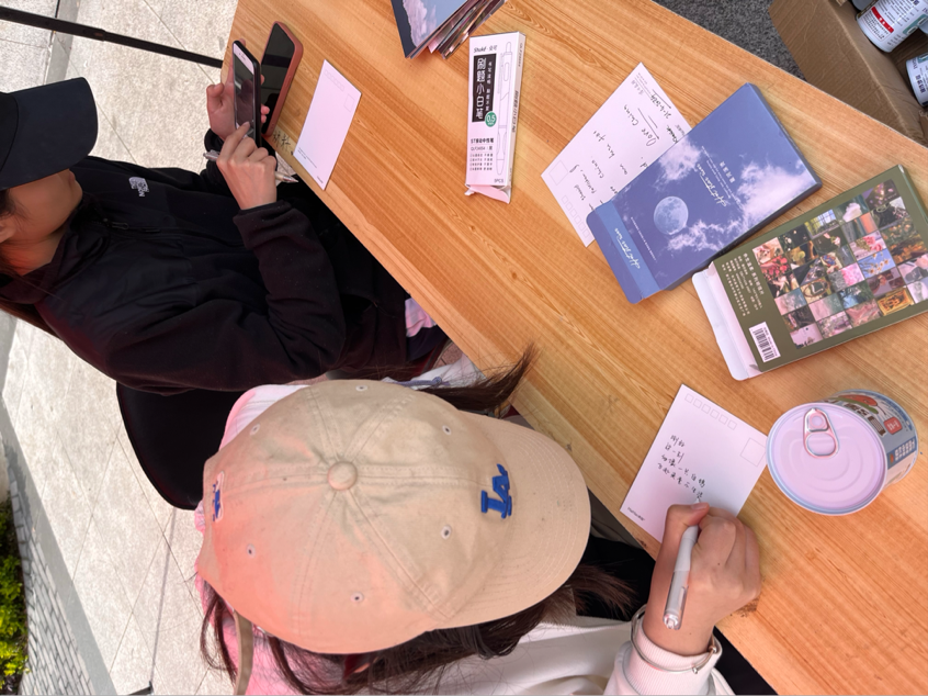 活动开始同学们互相讨论自己阅读过的书籍以及感悟、相互推荐自己看过的好书。讨论环节结束后,同学们可以挑选自己喜欢的明信片,并在明信片上写下心中所想,自己在阅读时看到的印象深刻的句子,未来的读书计划以及对自己、对家人的祝福。
