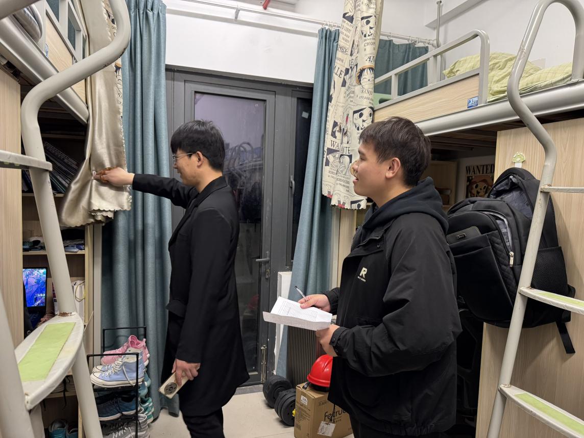 本科生第三党支部党员和蒲公英义工站志愿者还深入员工宿舍常态化开展安全大检查工作。党员们仔细查看宿舍卫生状况和宿舍安全问题,重点排查是否存在违章电器、香烟及烟头残留,同时向同学们宣传控烟知识与宿舍安全规范。